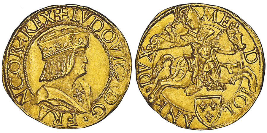 Lot 1165: Italy / Milan. Ludovico XII of France, 1500-1513. Double ducat n.d. NGC MS64 TOP POP. Estimate: 40,000 euros.