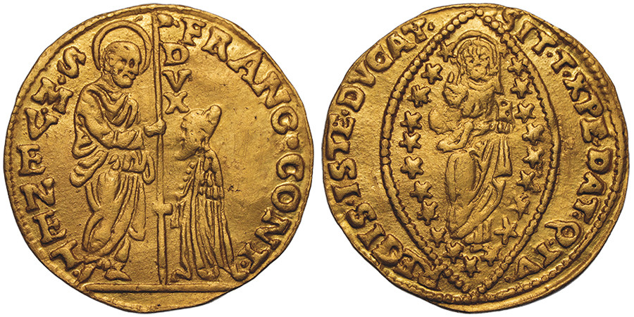 Lot 1221: Italiy / Venice. Francesco Contarini, 1623-1624. Zecchino. Extremely rare. About extremely fine. Estimate: 50,000 euros.