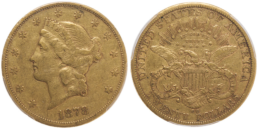 Lot 1501: USA.20 Dollars Double Eagle, Carson City, 1878 CC. PCGS AU 50 with a ultra low mintage of just 13,180 examples. Starting Bid: 6,000 euros.
